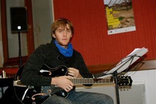 Pierre Inza accompagnant le choeur à la guitare